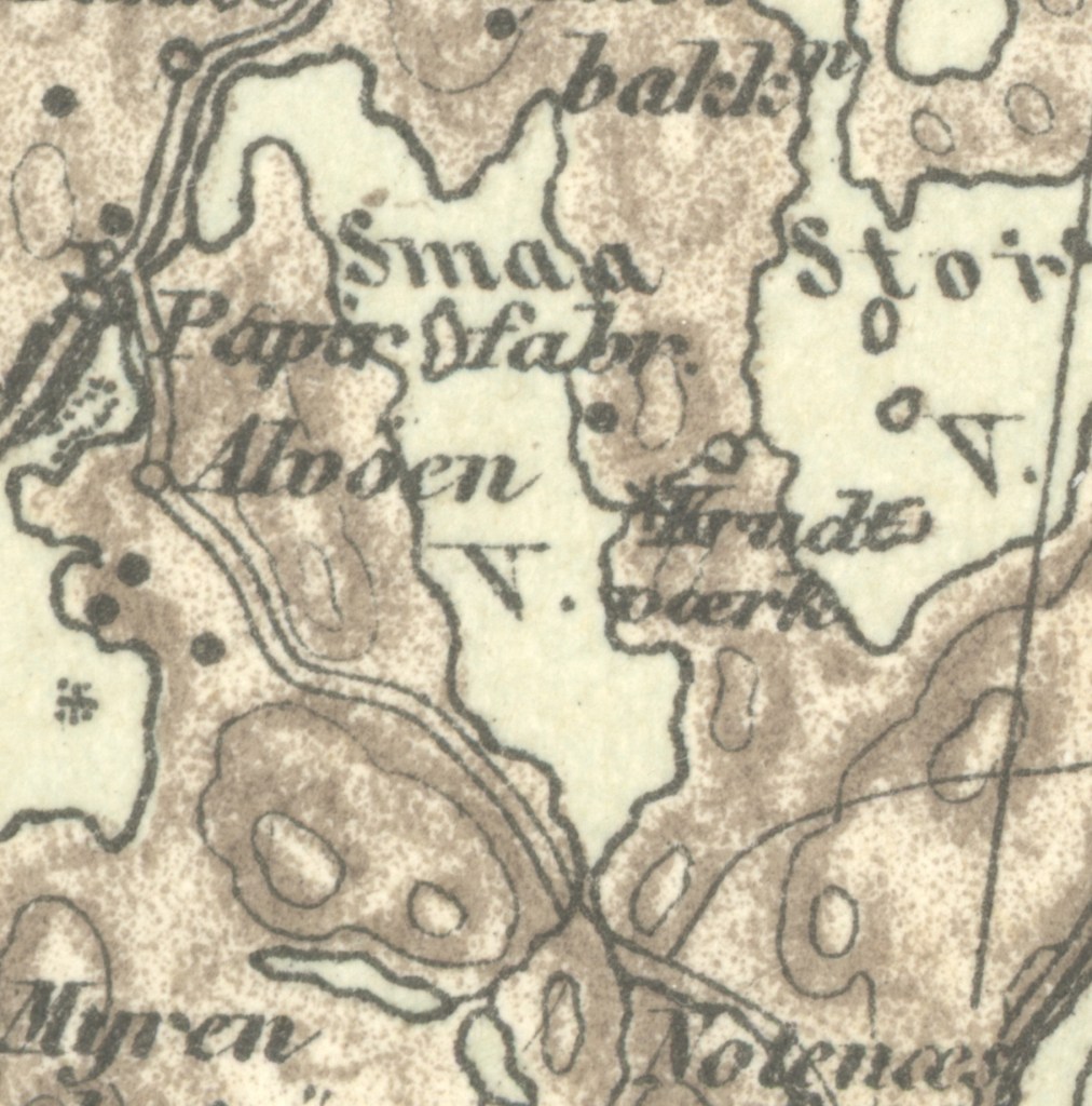 På dette kartet fra 1873 er det ingen hus i Vassenden. Den gamle Byveien går fra Alvøen til Tilsiterbroen i Sørenden av Småvannet. Derfra går det stier til Hetlevik og Mathopen.