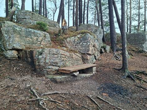 Klopp og benker på odden vest for Gullaksdalen