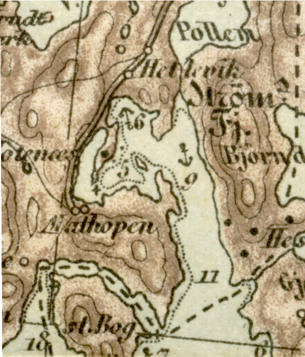 Dette kartutsnittet fra et kart utgitt i 1873, viser Mathopen og deler av Hetlevik.