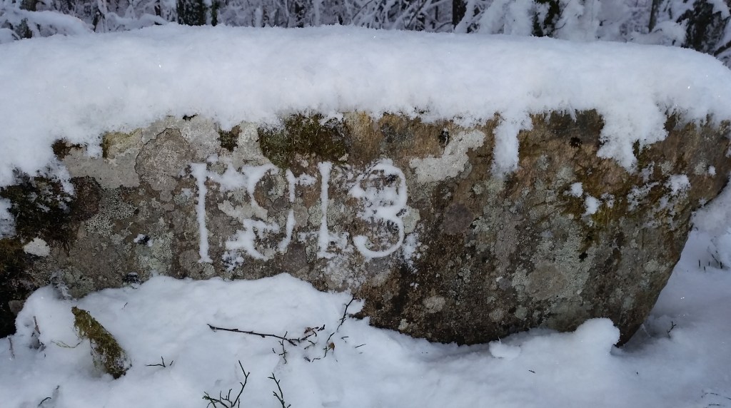 Denne steinen med årstallet 1913 står på den vestre delen av demningen i dag. Demningen ble bygget høyere og mer solid i 1913.