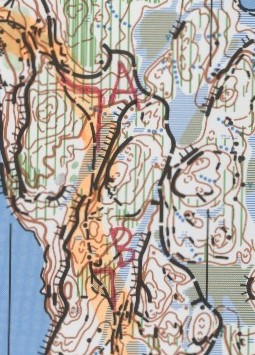 Her er kløvveien i Gullaksdalen merket av med rødt. Johan Fredrik Bockelie beskriver den slik: